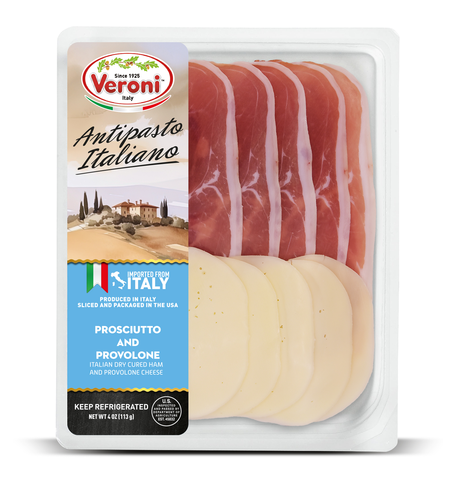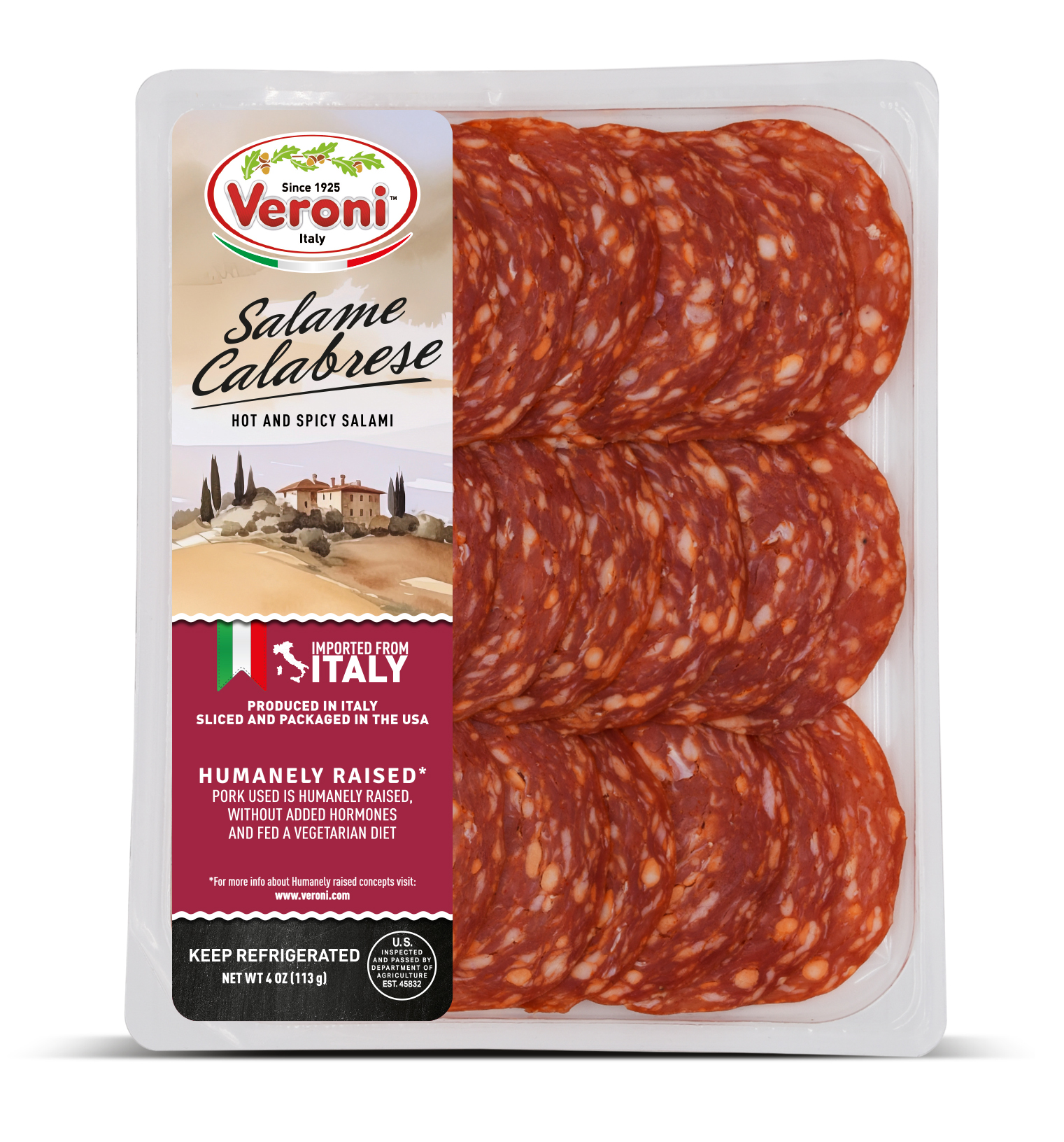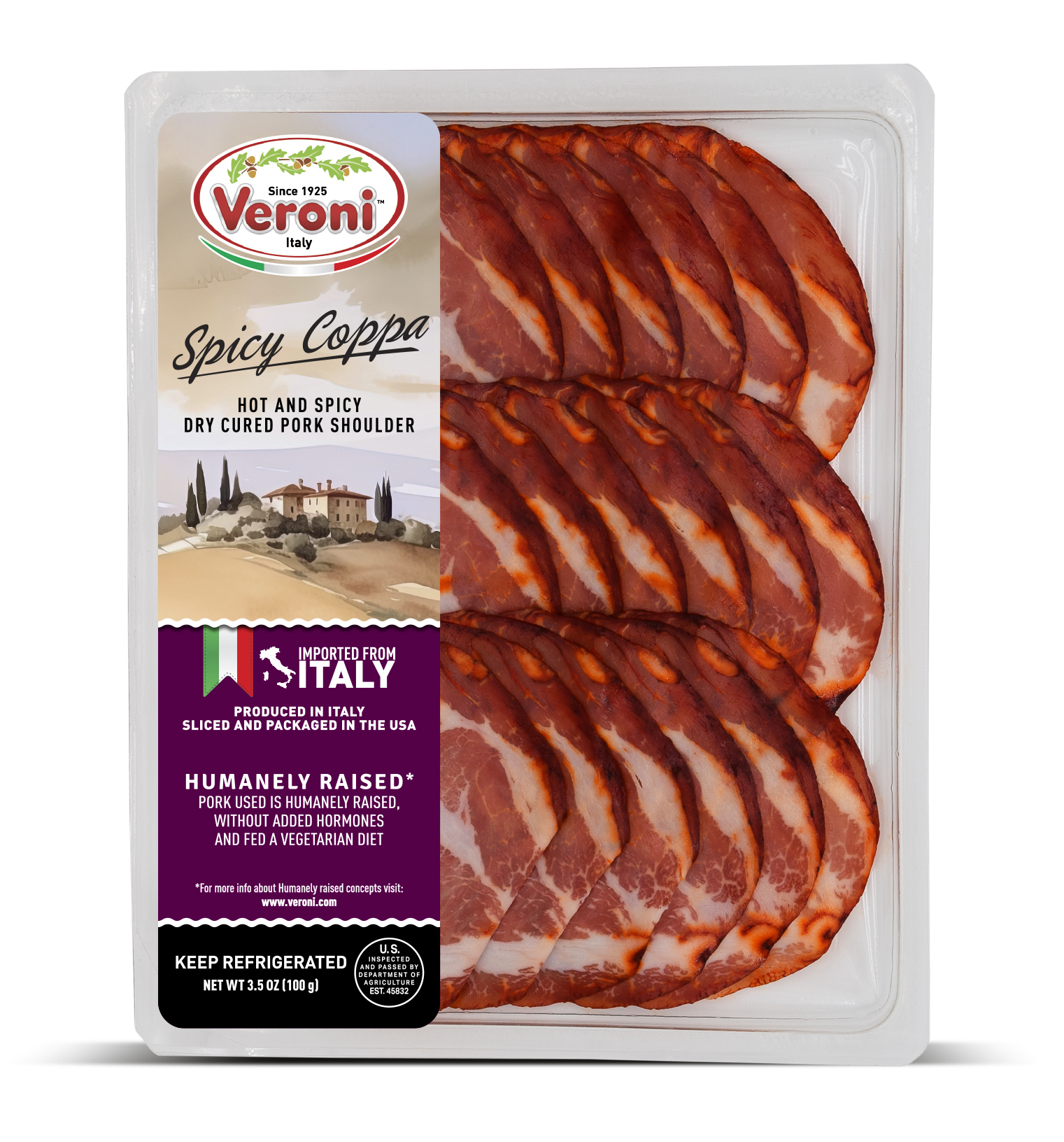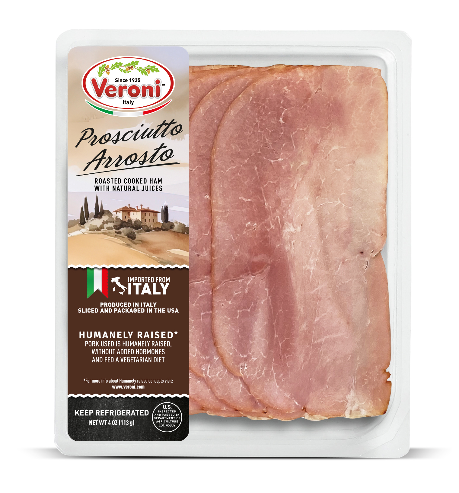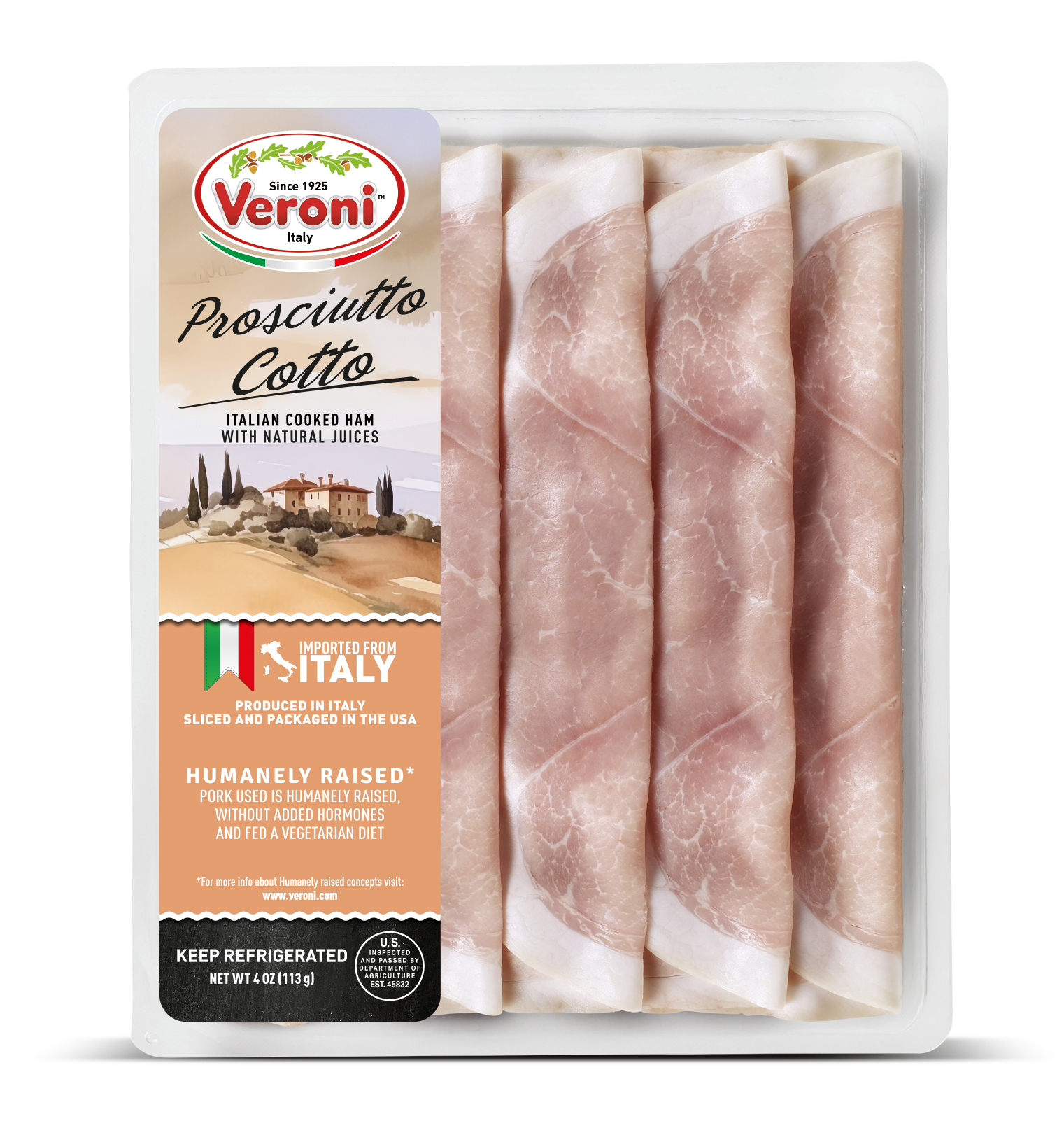 The entire product assortment is manufactured and HPP processed in Italy. It is then sliced and packaged in a consistent climate-controlled environment in Veroni’s USA facility, to guarantee optimal freshness. The slices are cut very thinly, as if they were prepared in Italy, for the best taste and aroma. We then apply “Ready to Eat and Easy to Open” packaging, a new type of easy open packaging, which results in a longer shelf life.