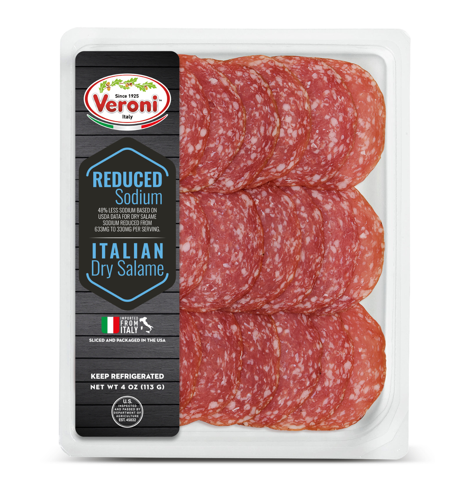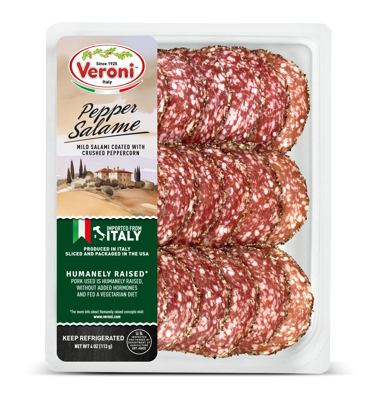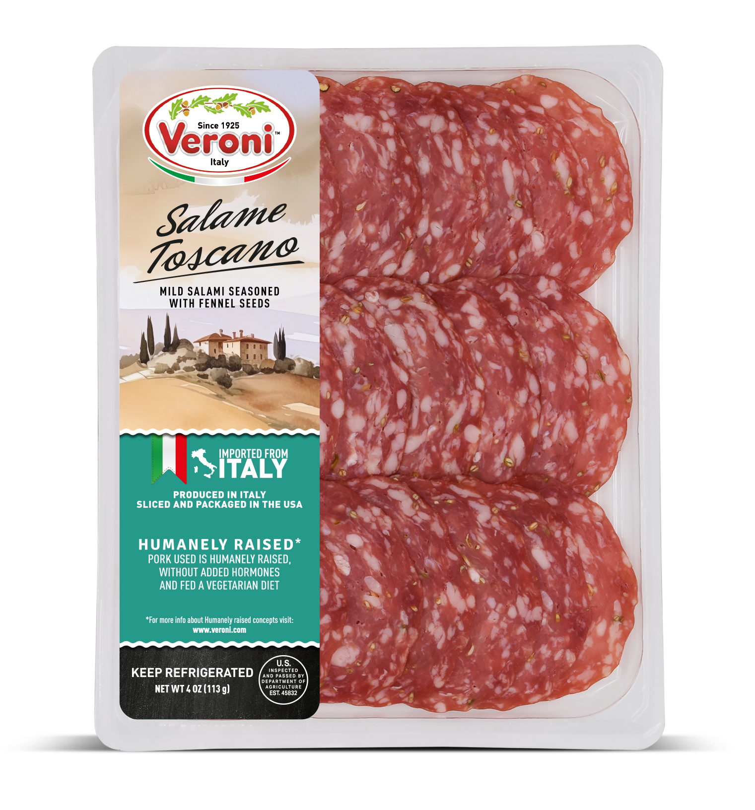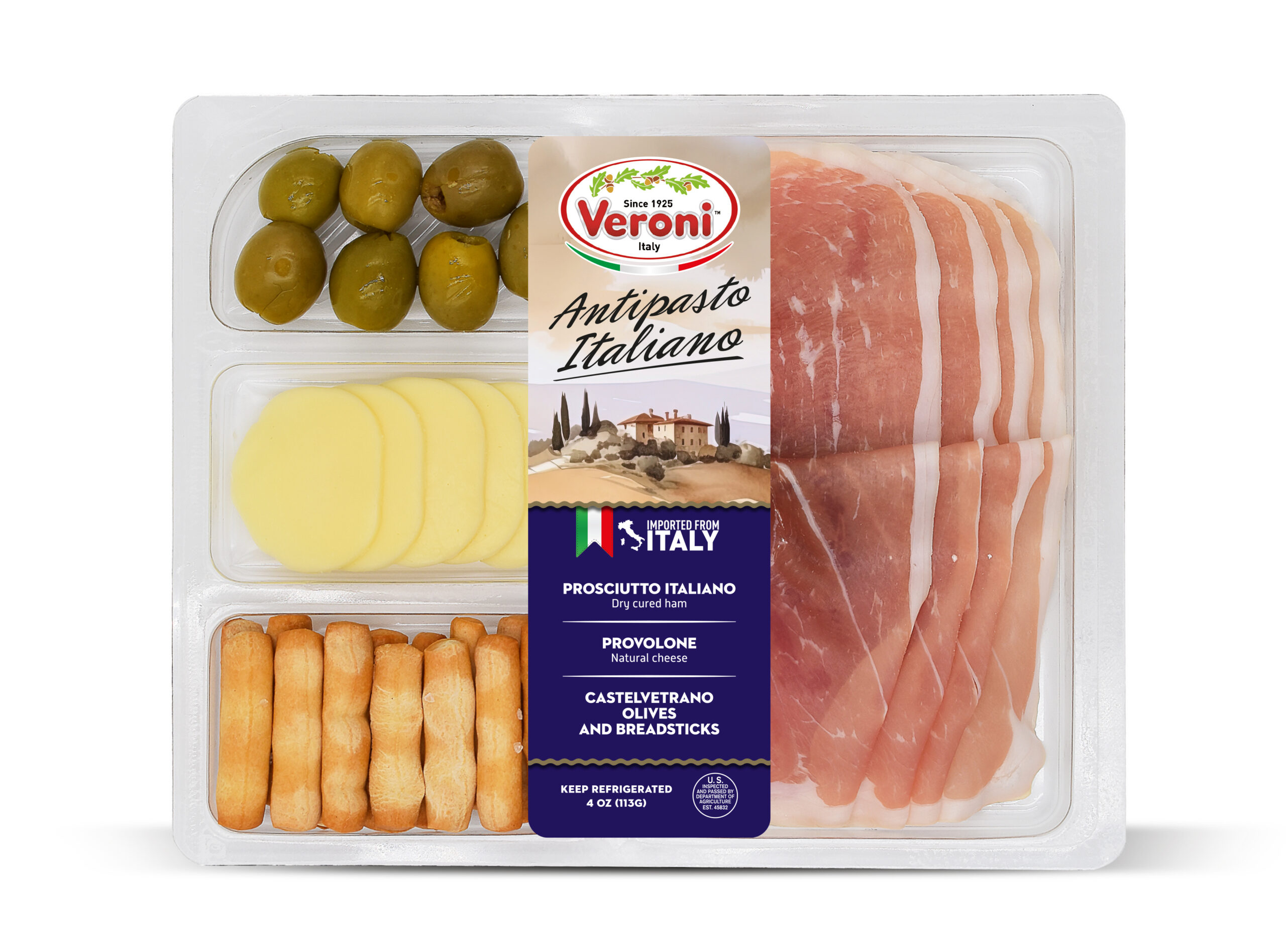 The entire product assortment is manufactured and HPP processed in Italy. It is then sliced and packaged in a consistent climate-controlled environment in Veroni’s USA facility, to guarantee optimal freshness. The slices are cut very thinly, as if they were prepared in Italy, for the best taste and aroma. We then apply “Ready to Eat and Easy to Open” packaging, a new type of easy open packaging, which results in a longer shelf life.