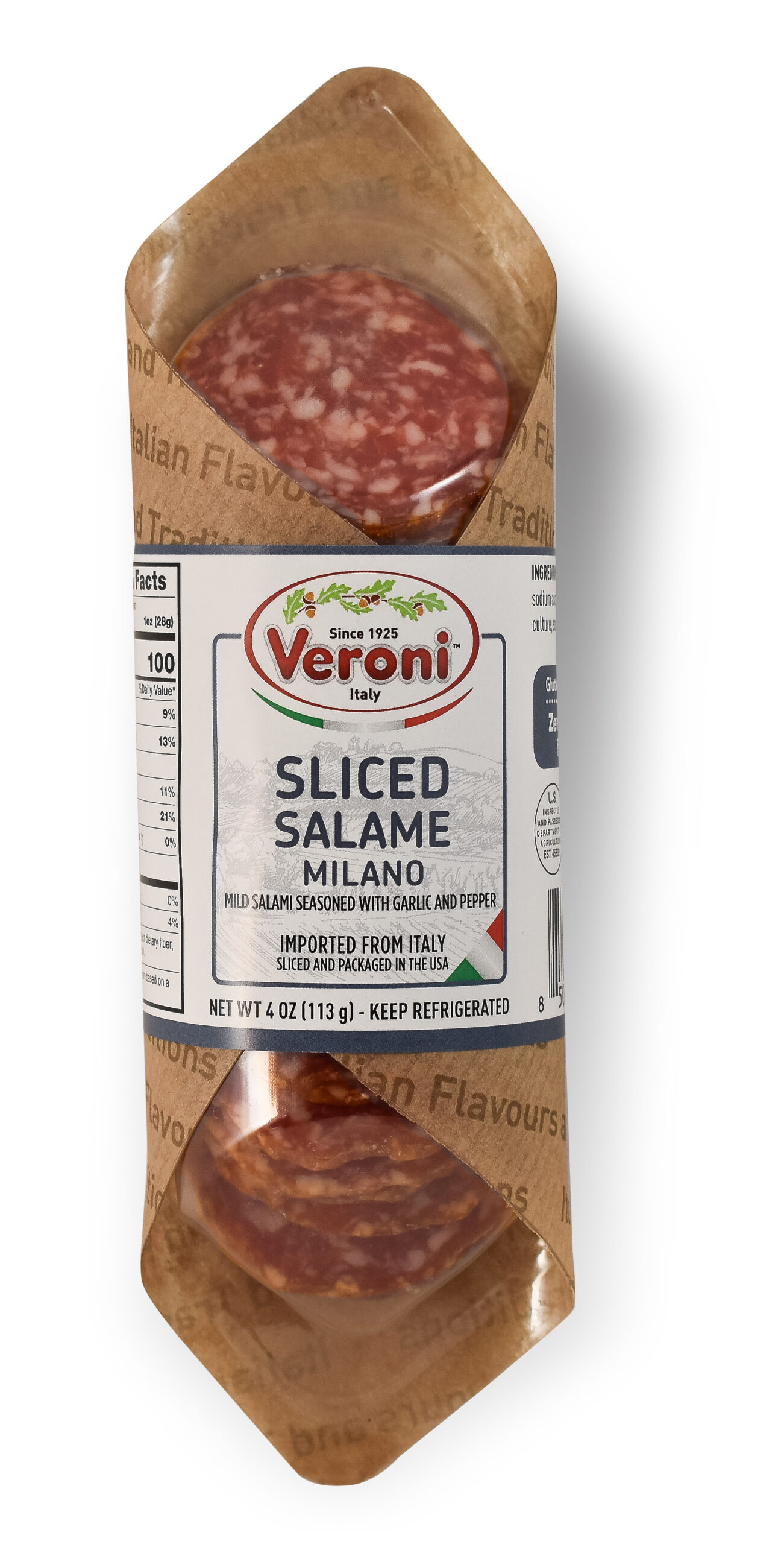 A salami of ancient tradition and illustrious history, Veroni’s se¬lected Milan salami is characterized by its long aging, the finely ground fat, the intense red colour, and its particular sweetness to the palate.
