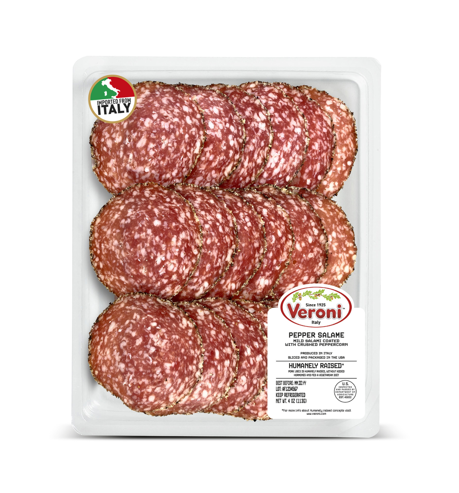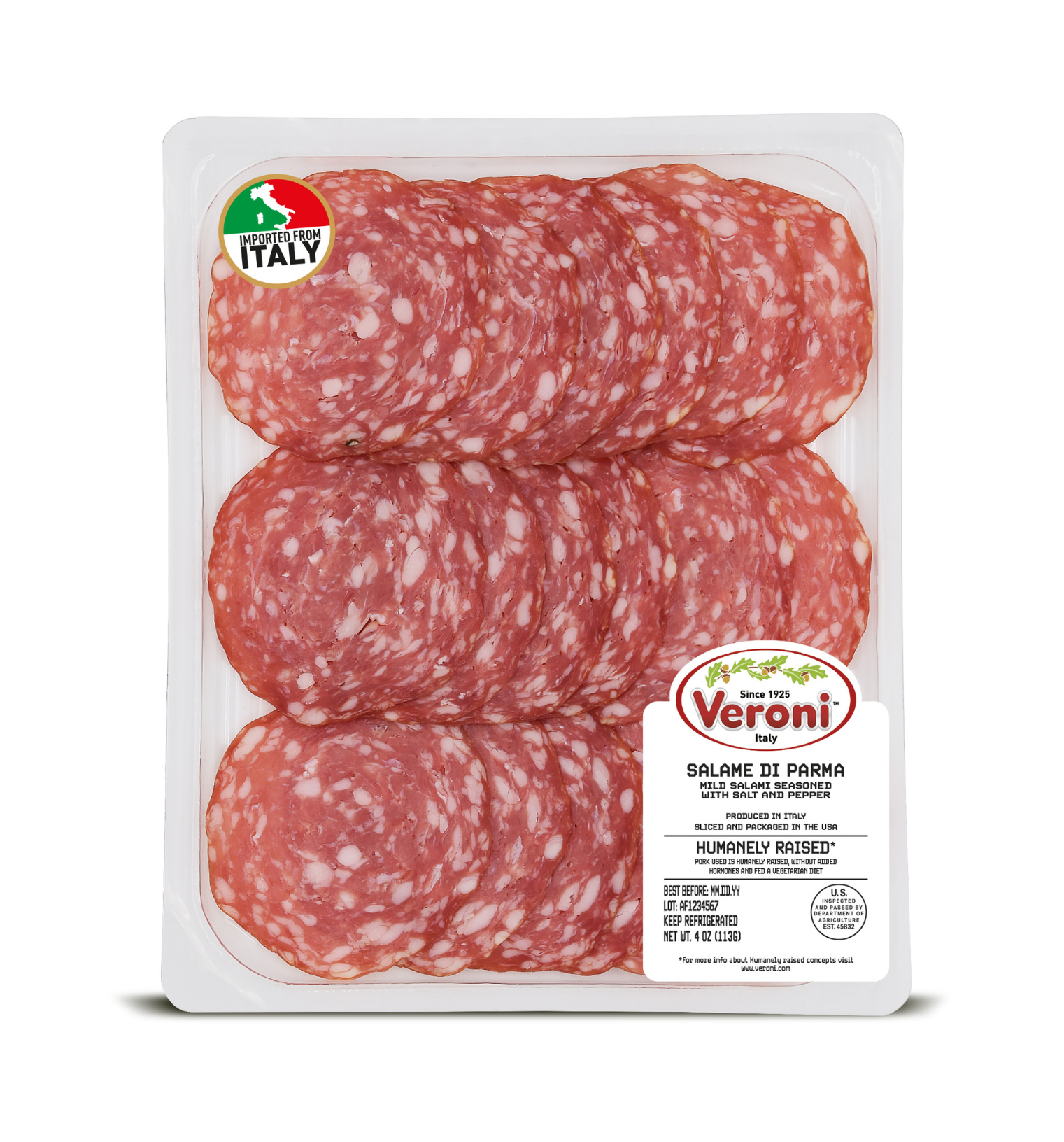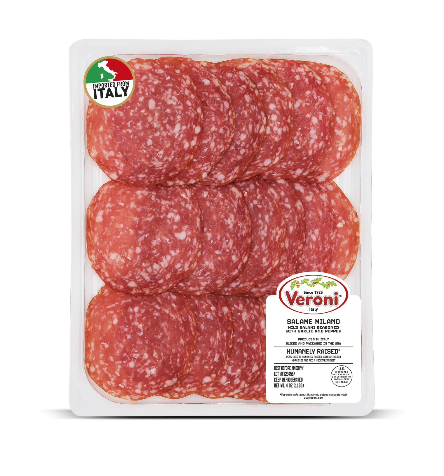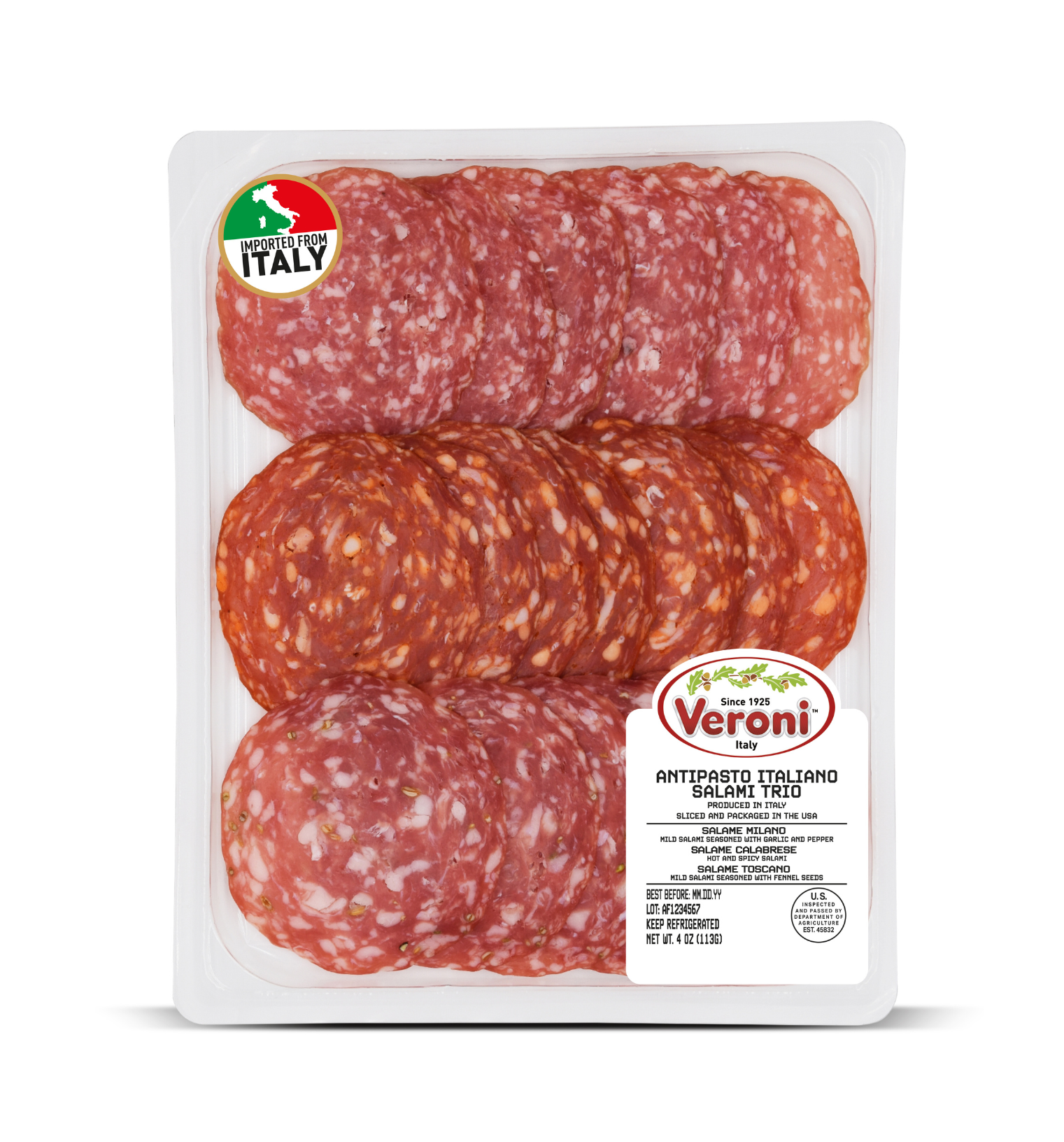 In supermarkets, take away trays are usually located near the deli counter in order to buy the same fresh product without having to standing in line. The transparent packaging with a simple label makes this Veroni perfect for those who enjoy freshly sliced charcuterie meats.