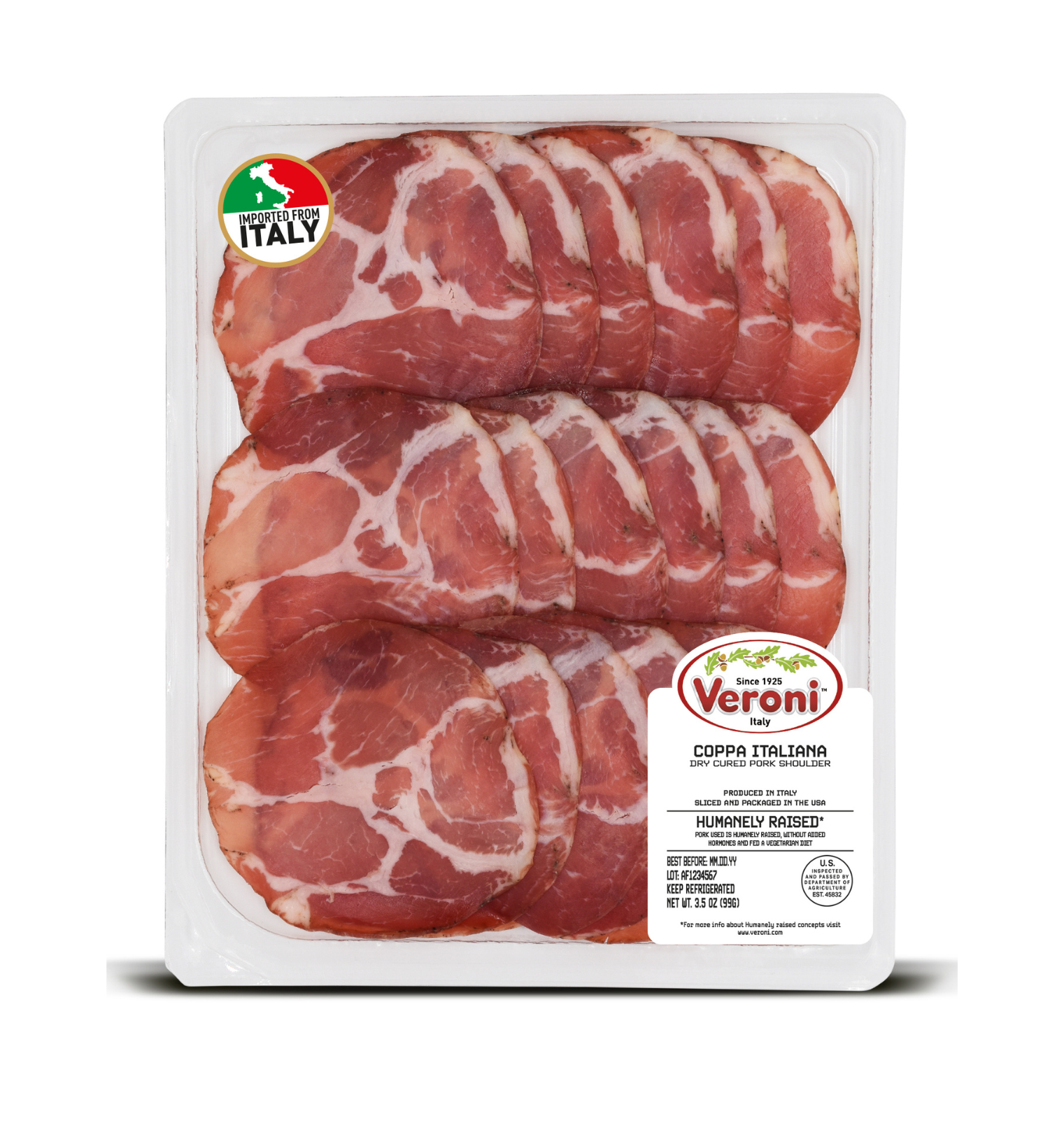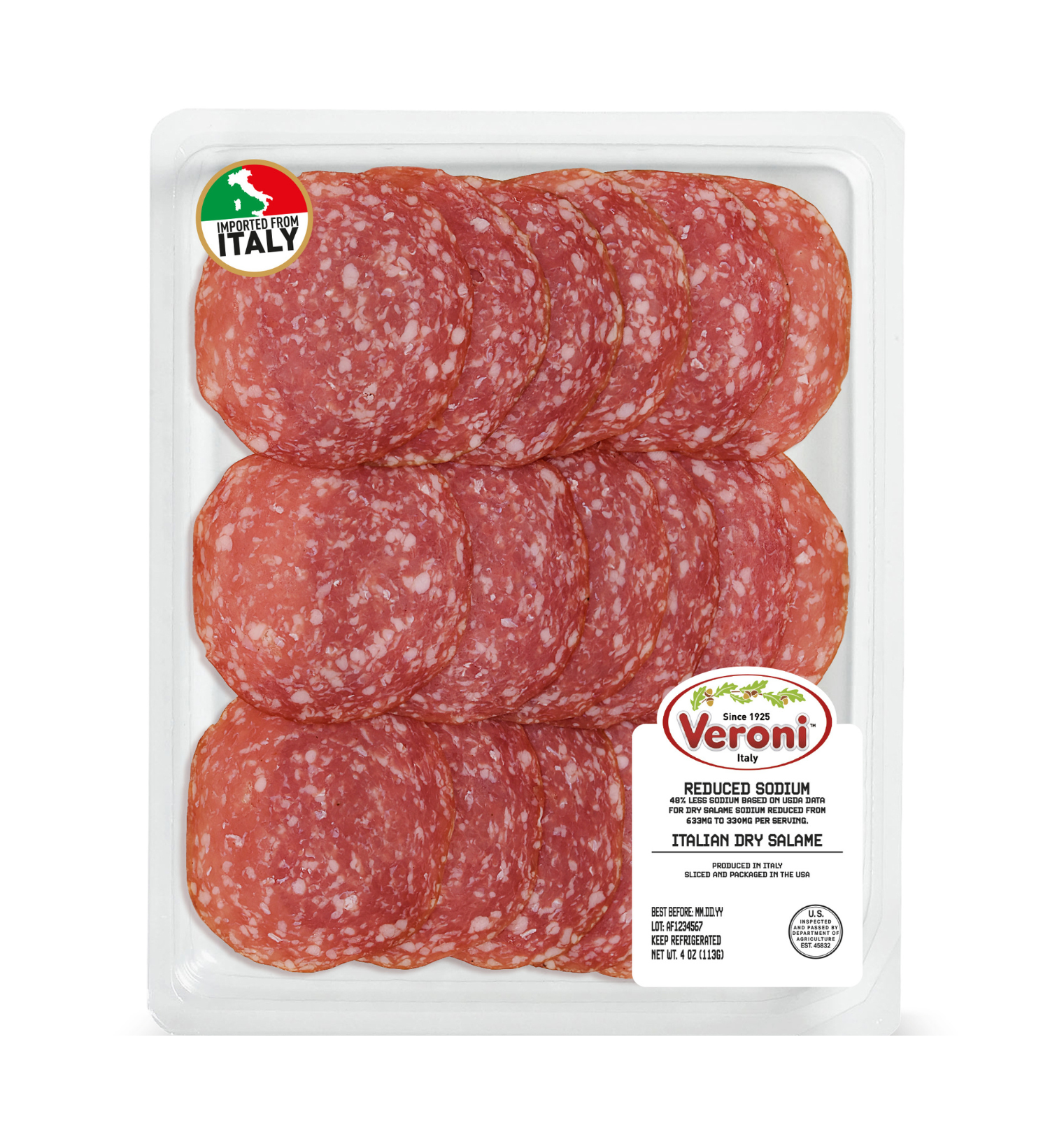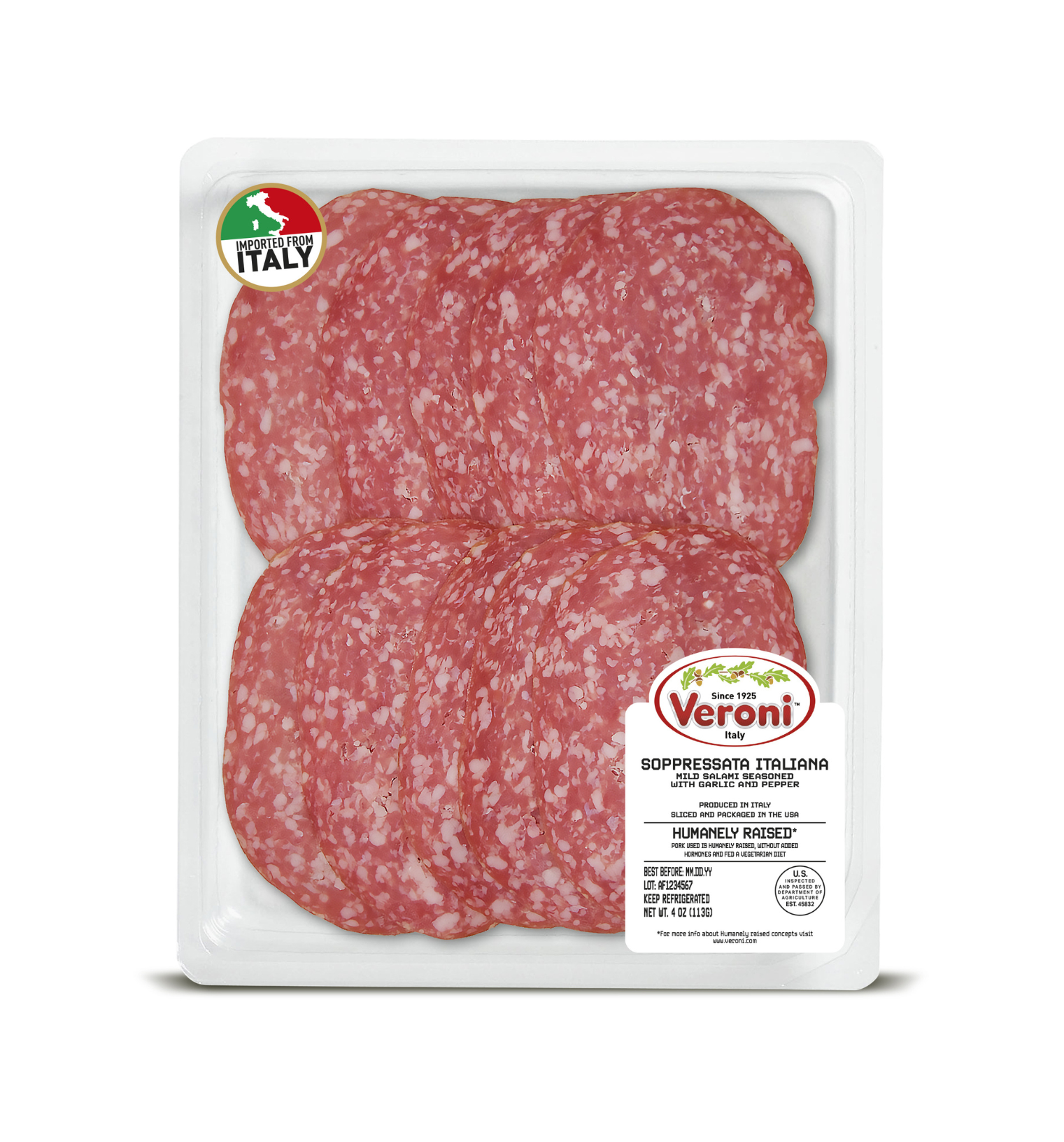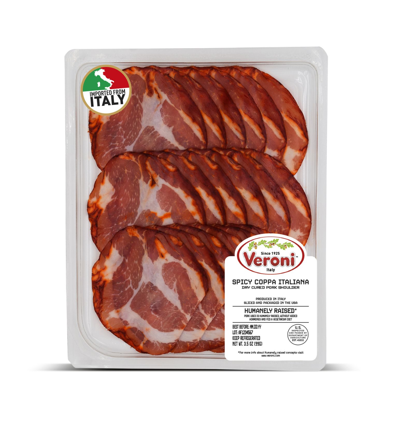 In supermarkets, take away trays are usually located near the deli counter in order to buy the same fresh product without having to standing in line. The transparent packaging with a simple label makes this Veroni perfect for those who enjoy freshly sliced charcuterie meats.