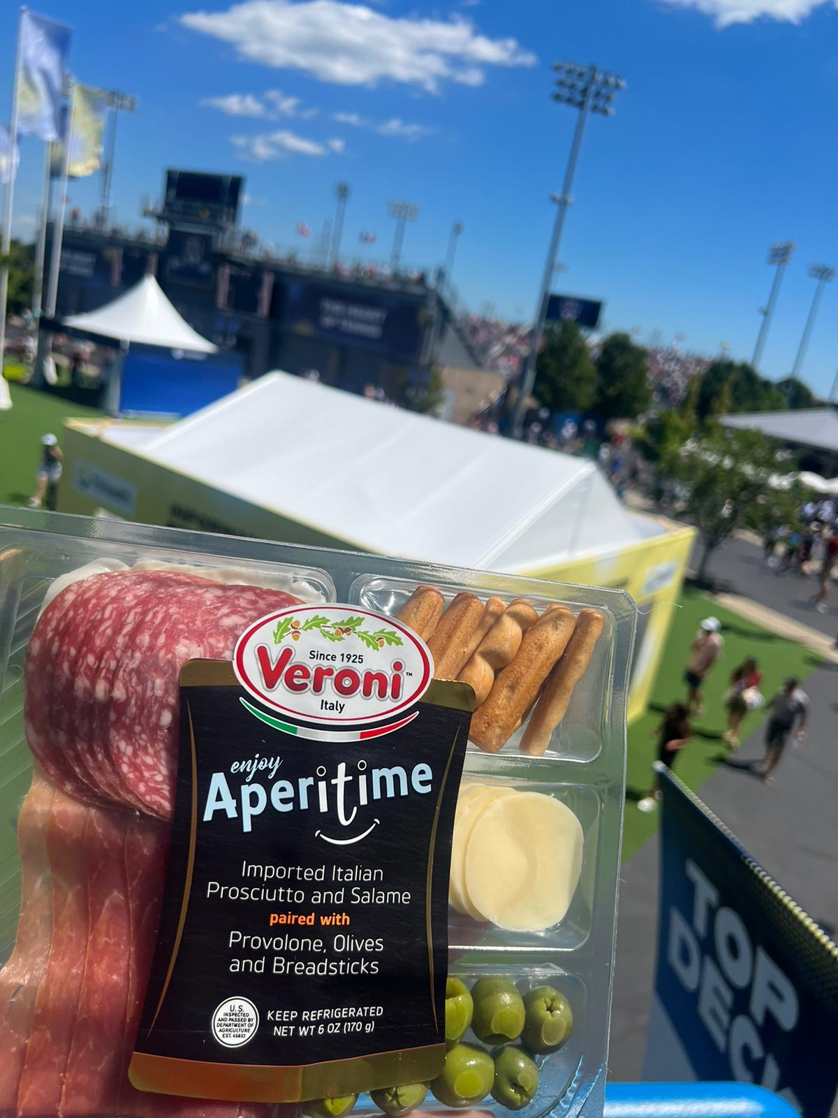 For nine incredible days, we experienced being the Official Italian Salami Sponsor of the W&S Open. This year, it was not enough for us to delight spectators during the event at Veroni’s Top Deck by just offering them an authentic Italian aperitivo experience in collaboration with Aperol USA. We also wanted to go above and beyond by cheering on the world’s top tennis players’ breaks with our authentic Italian products, served in the Players Lounge and we captured the media’s taste buds thanks to a flavor-packed media sampling starring our charcuterie boards.